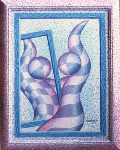 LA MASCHERA E LO SPECCHIO (luglio 1995) (Acrilici su tela 45x60 più cornice dipinta)